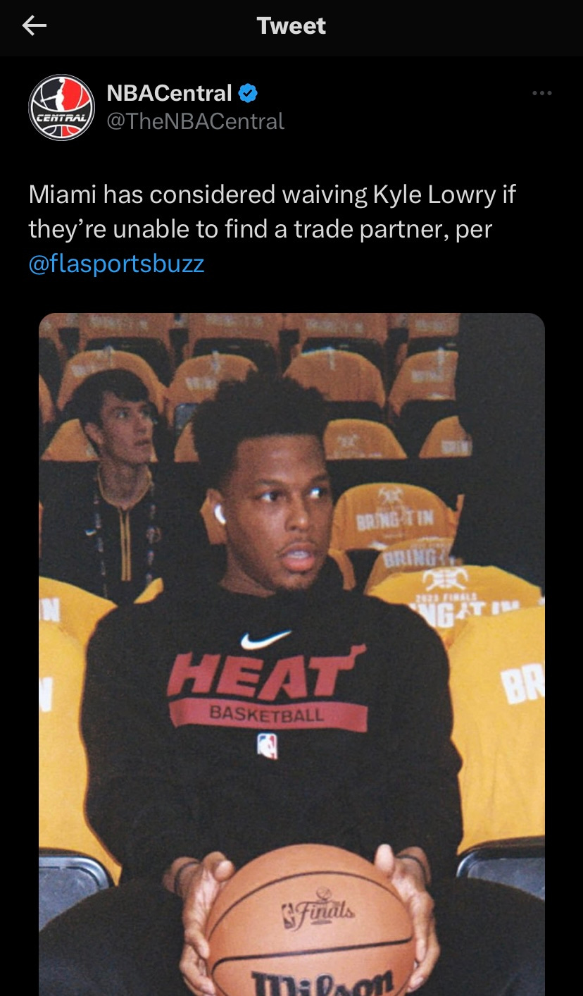 It was reported by Barry Jackson that if the Miami Heat are unable to find a trade partner for Lowry, the team could consider waiving/stretching him and his large contract.